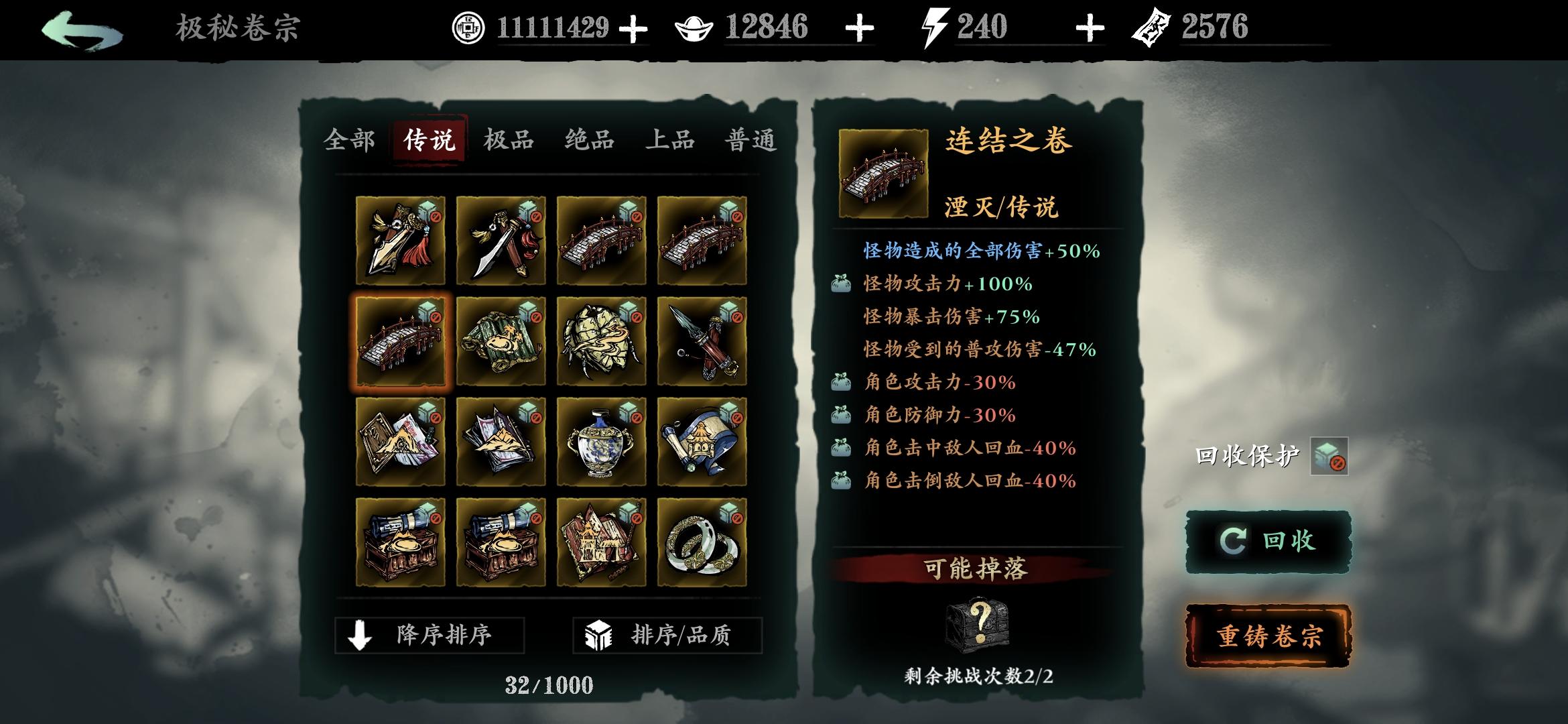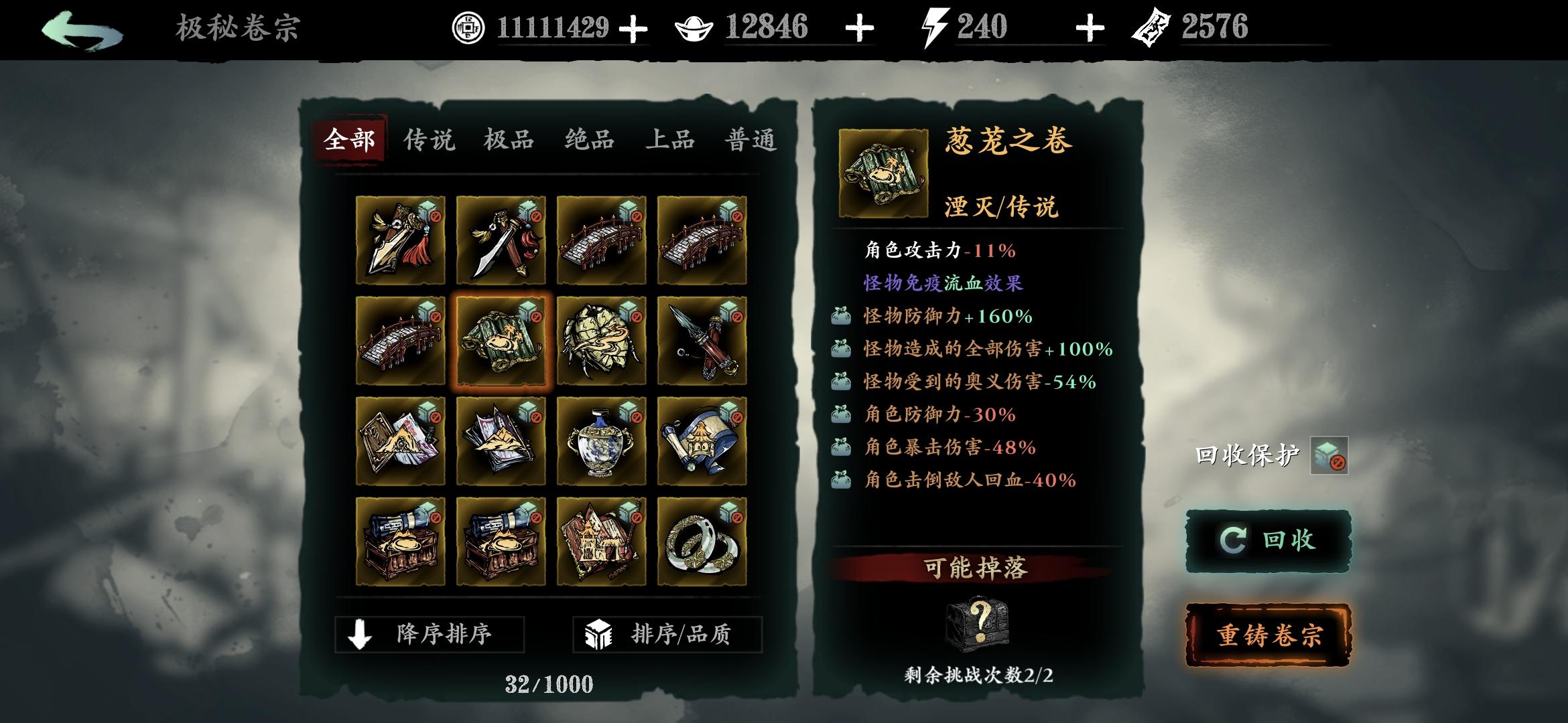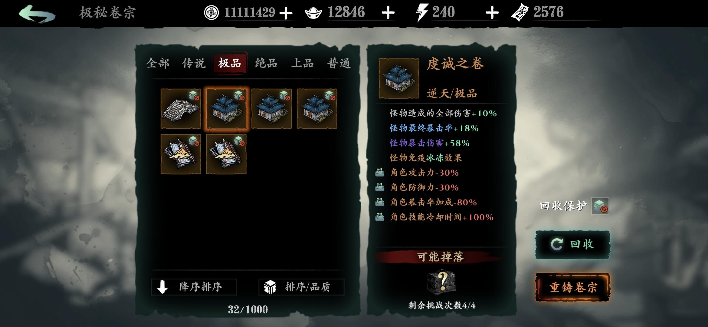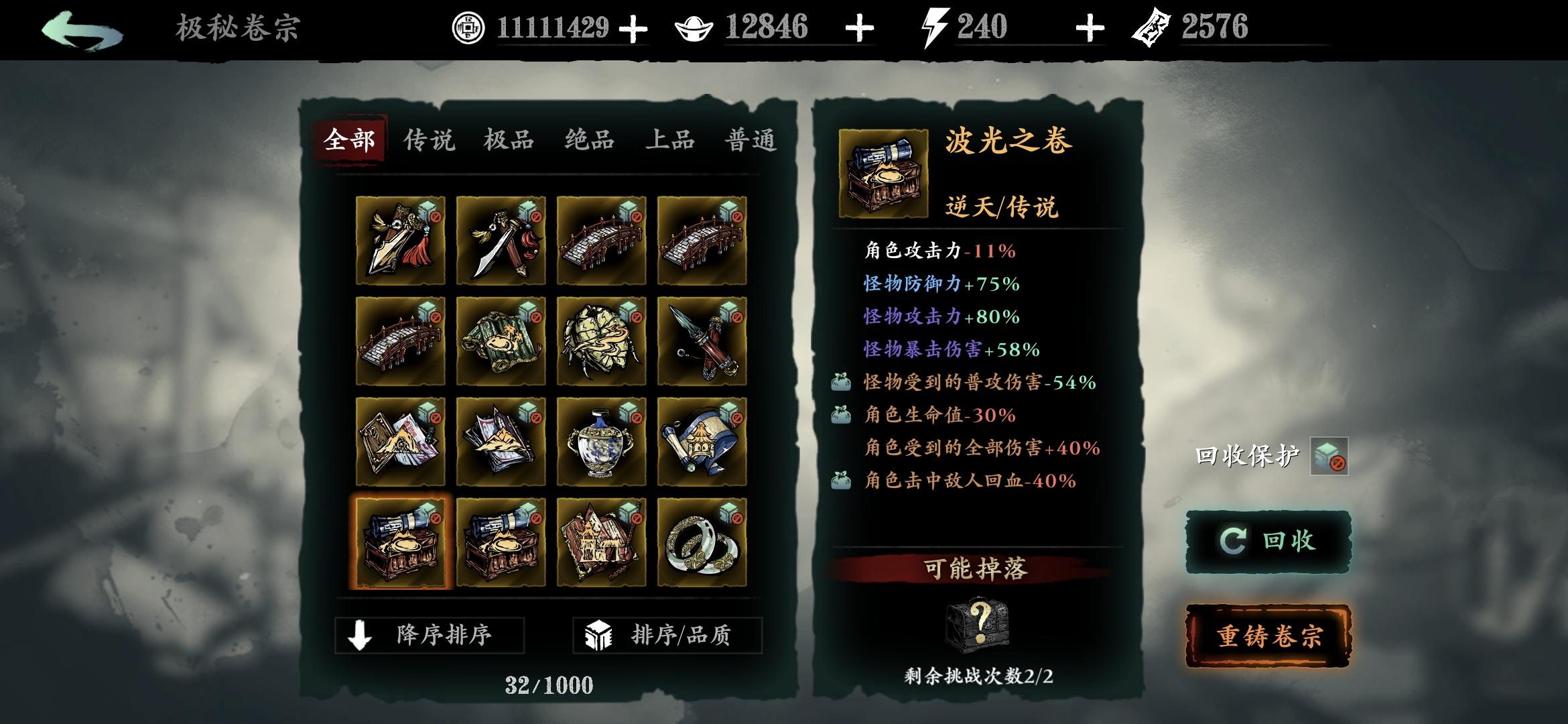 分享一个常用笔记点法,可以让传说和极品逆天卷子变凐灭,缺币分解卷子时重新点笔记(卷宗回收时获得的残页)点满。