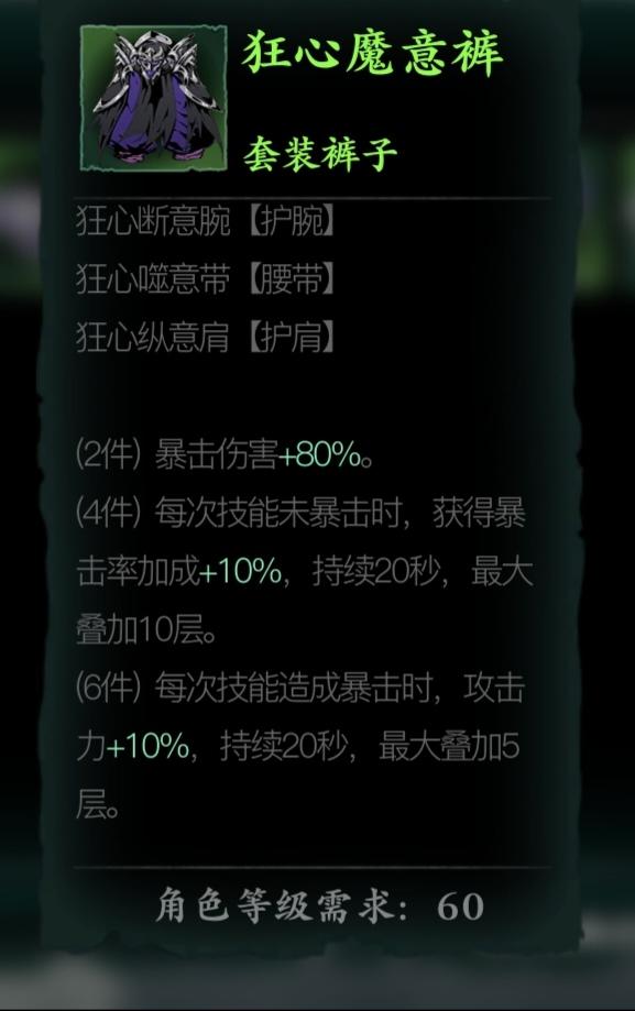 虔诚:掉狂心套,我玩左殇一般团本剑六九九、爬塔武痴六、虔诚套收藏。