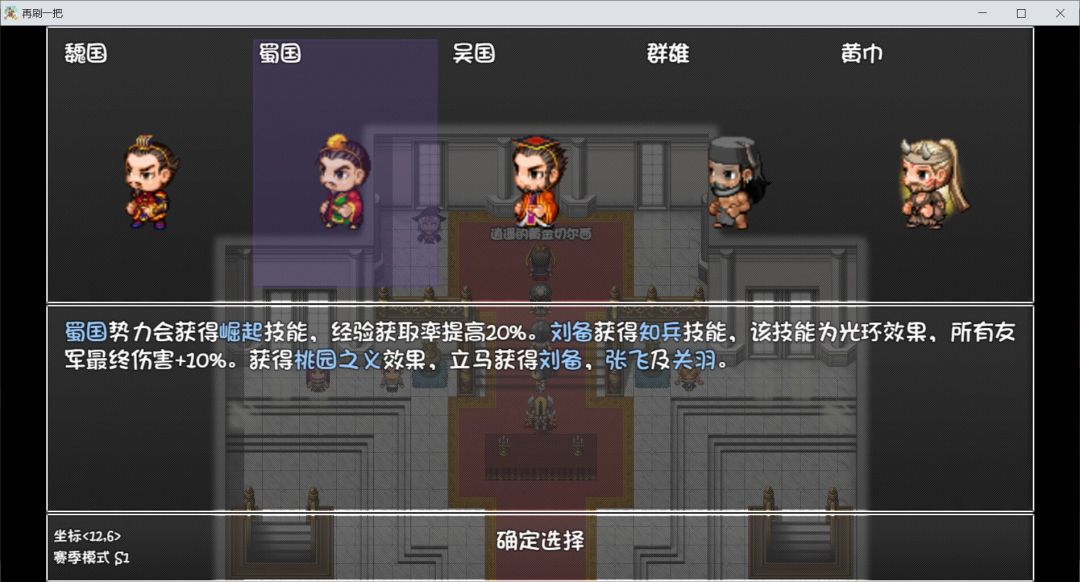 蜀国 开局关张,还是很舒服的。经验加成也可圈可点(刷级的痛苦想必各位都明白)