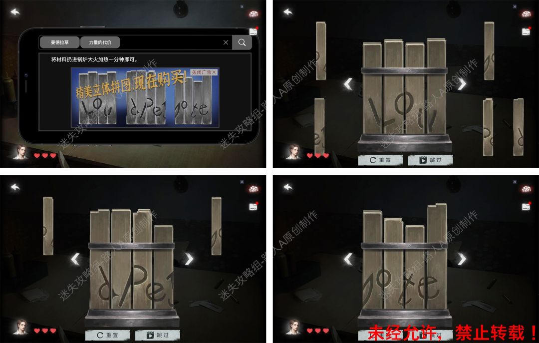 34.根据拼图广告的线索,使用2个【木块拼图】,完成拼图小游戏,得到【木杯】。34.1、34.2