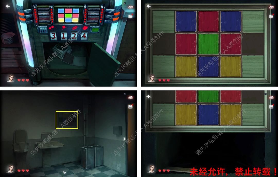 32.根据点唱机的线索,调整厕所墙上的机关,得到【木块拼图】。32.1