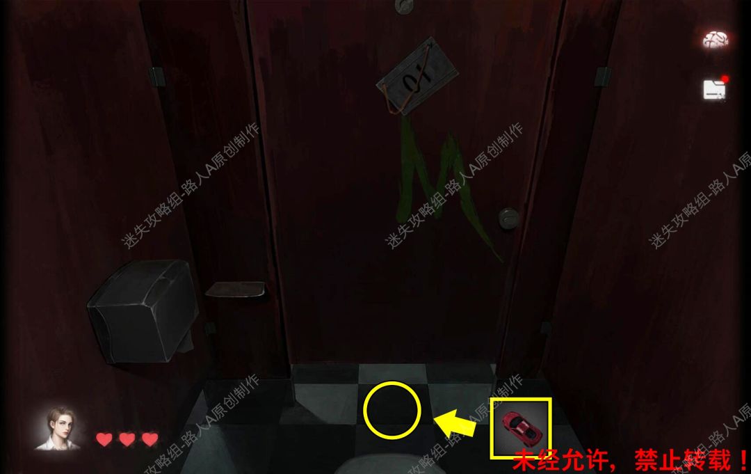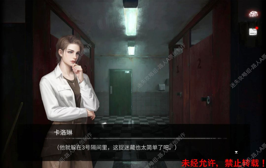 ① 小男孩躲在3号隔间,则玩家进入4号隔间(内侧门牌03)。