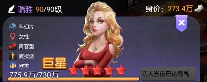 技能特性:参与拍摄科幻片时,9档电影额外提升票房约25000