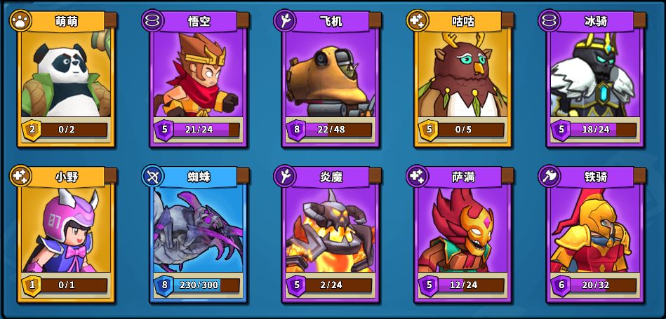 具体阵容:萌萌、悟空、飞机、咕咕、冰骑、小野、蜘蛛、炎魔、萨满、铁骑