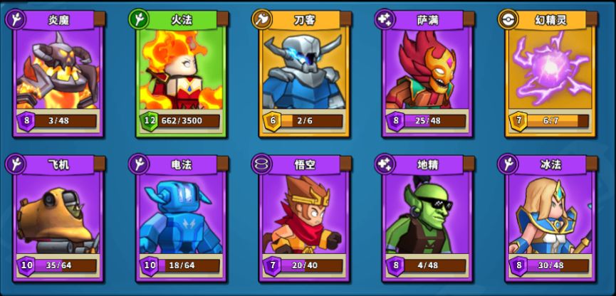 具体阵容:炎魔、火法、刀客、萨满、飞机、电法、悟空、地精、冰法、幻精灵