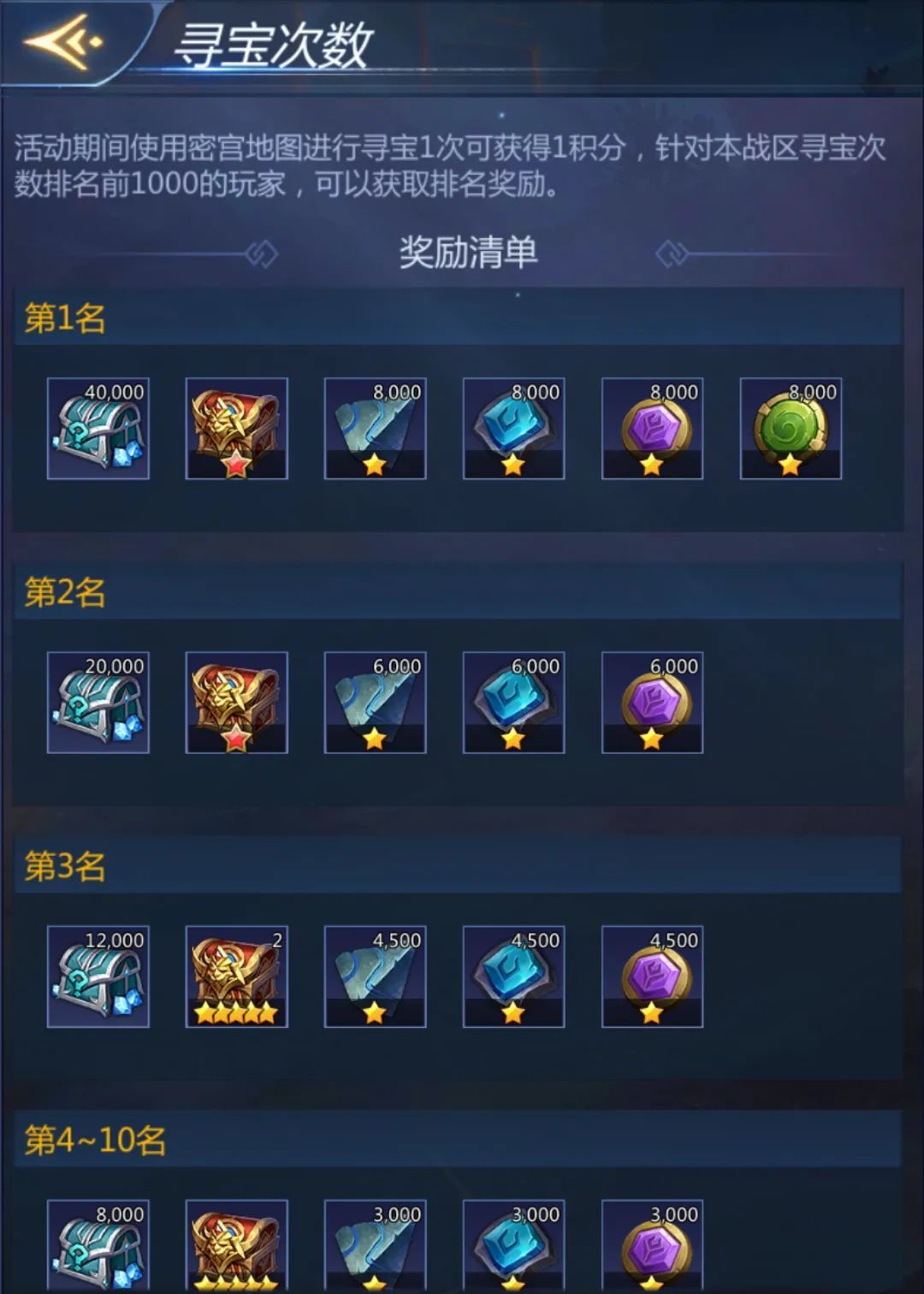 3.完成指定的寻宝次数,即可领取对应的进度奖励
