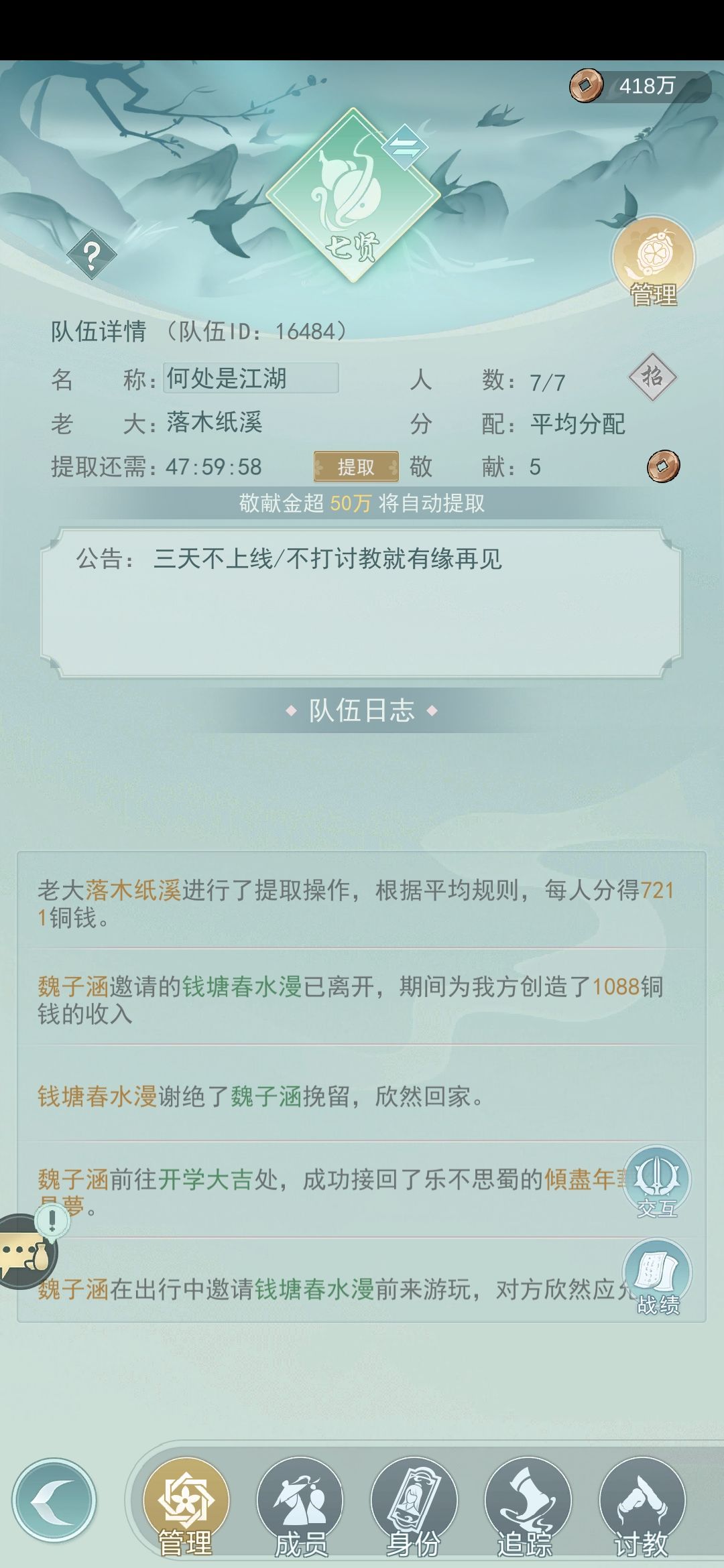 有带队一个满级村和一个七贤