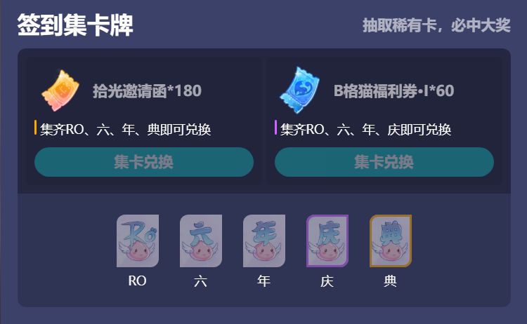» 活动期间在活动页中进行每日签到时可获取1张卡片,每日仅能获得1张。