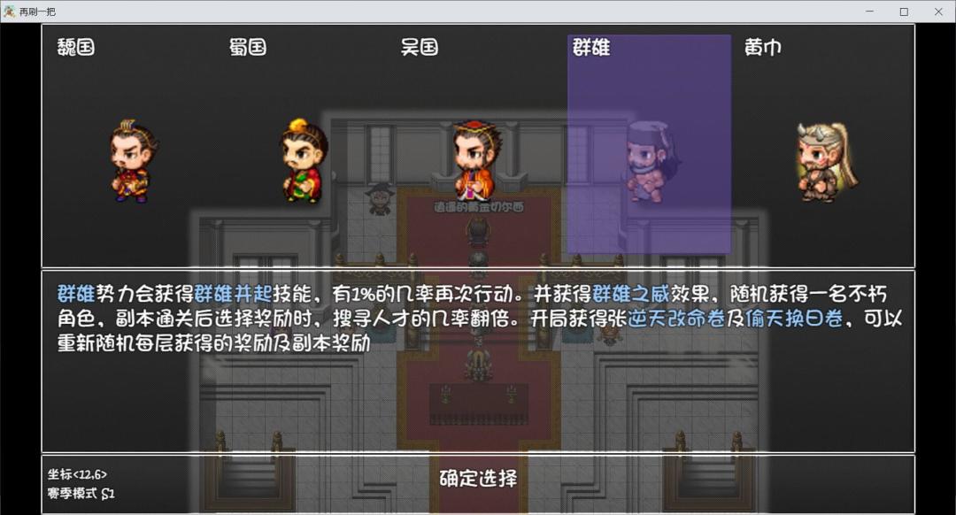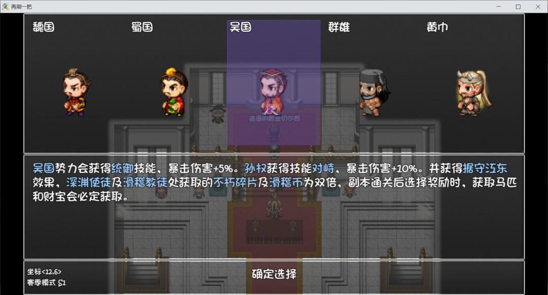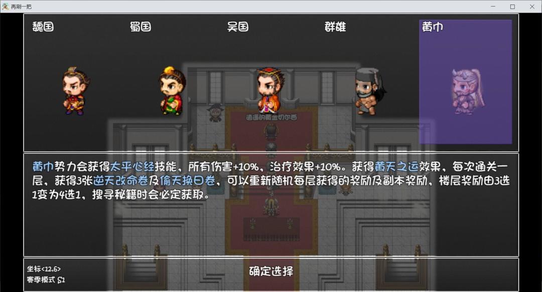 总结:阵营建议群雄、黄巾、吴。没有开局获得人物的势力,建议小明开局(其实吕布也很强但小明是信仰)。拿南贤给的斩仙砍了第三层,sl开局不朽,小明这次不会弱,因为