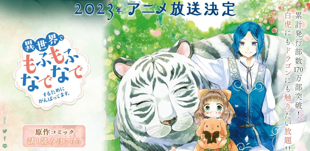 改编自由日本小说家向日葵创作,并由雀葵蘭绘制插画的轻小说《为了在异世界也能摸毛茸茸而努力》动画官方网站已于周六上线。