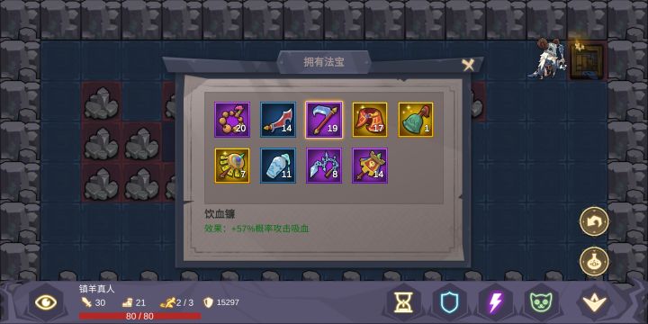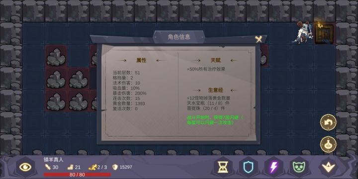 后期一刀回血30,转盾后40+,一轮三刀,保底130+护盾,触发一次连击护盾得翻10几倍,护盾越打越多(49层可以把菩提珠和五毒幡什么的全卖了,买饮血镰把吸血率拉满)😏