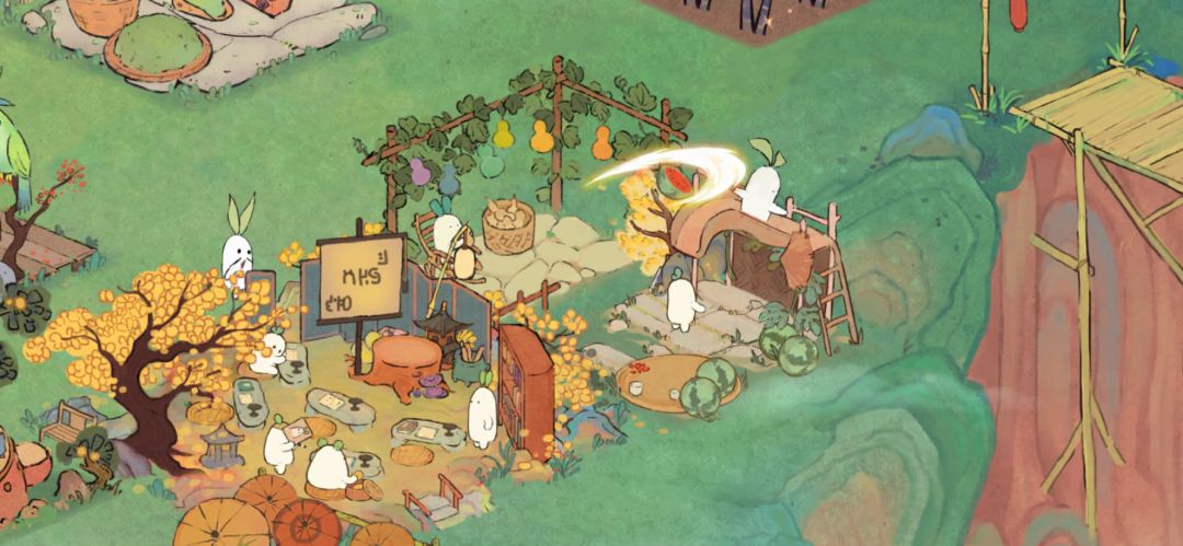 图四:让闲坐在葫芦藤地下的萝卜一起看超高能杀西瓜。