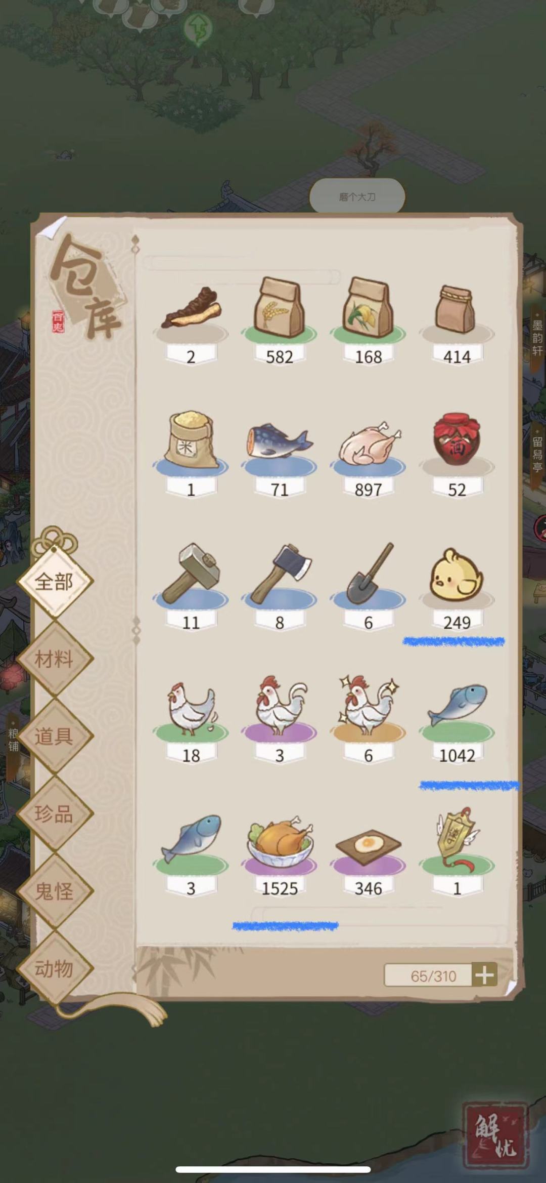 看一下我仓库的鱼苗、菜等等的存货(只要集市刷新我就去卖掉)