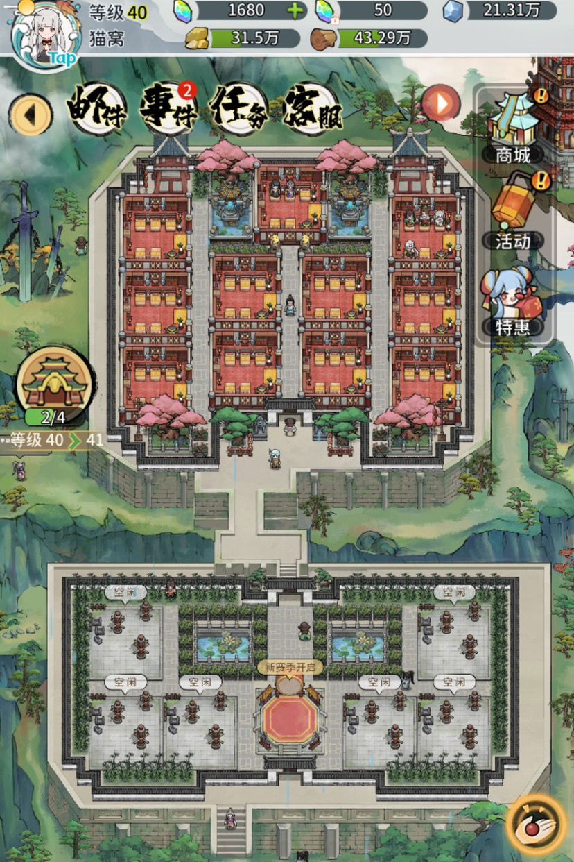 嘿嘿我是参考tap大佬们的装饰做的改动,首先我们掌门住的地方一定要豪华!然后大门位置我是做的对称,方便自己收菜和做装备(是不是好懒(⸝⸝•‧̫•⸝⸝))打桩和弟子的休息室我感觉做的也很好看!!还有剩下的几块地我想等建筑多了在弄,