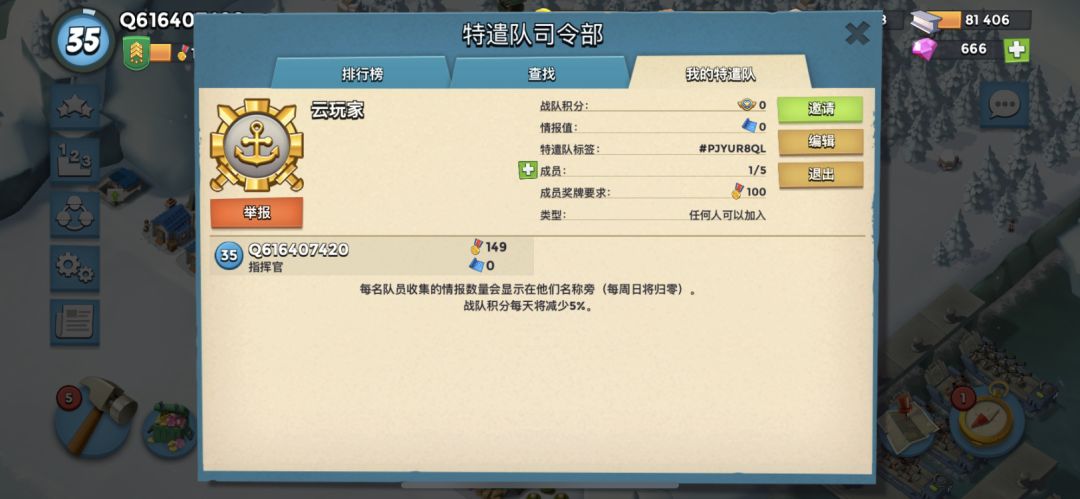 新战队招萌新或高本小号,要求极低,只要每天打任务即可,情报够开就行