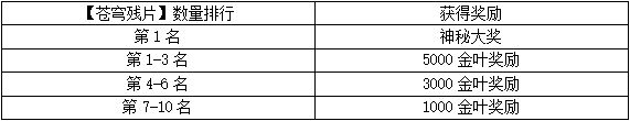 【活动内容】:活动期间,玩家可通过累计消费、限时兑换商城、限时商店购买等方式获得【苍穹翼影礼盒】。打开【苍穹翼影礼盒】有概率获得、【逐梦の之翼】、【天使の之翼】、【星耀碎片】、【神秘陨石碎片】、【上古灵石】、【苍穹残片】。活动结束后,我们将统计【苍穹残片】最多的区服,该区服中,持有苍穹残片】最多的前10位玩家,将获得金叶奖励。我们还将统计所有服务器玩家持有【苍穹残片】的数量,拥有最多【苍穹残片】的玩家,将会获得“神秘大奖”~~