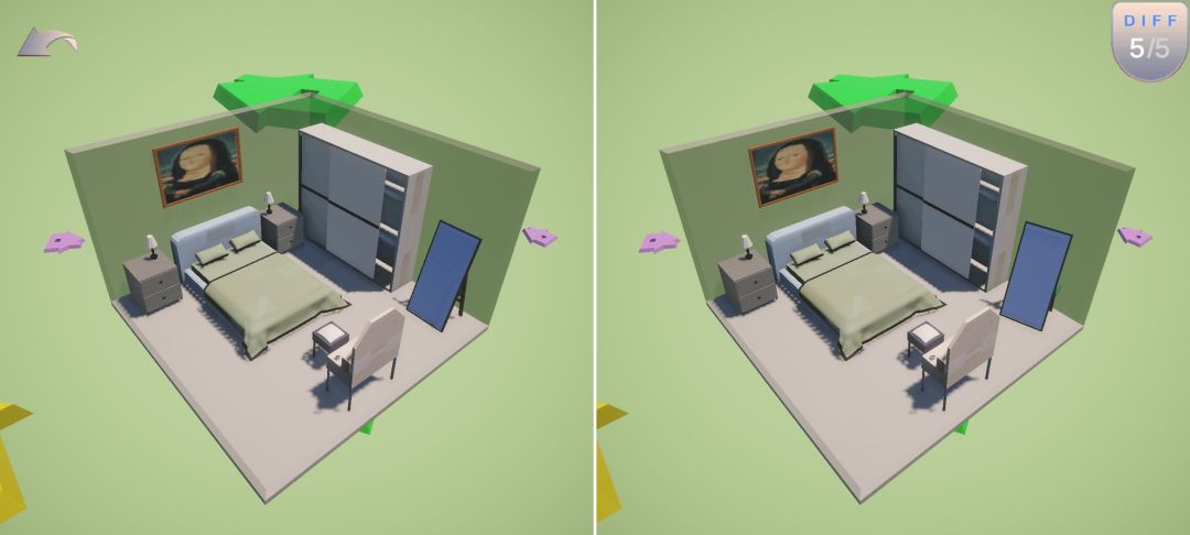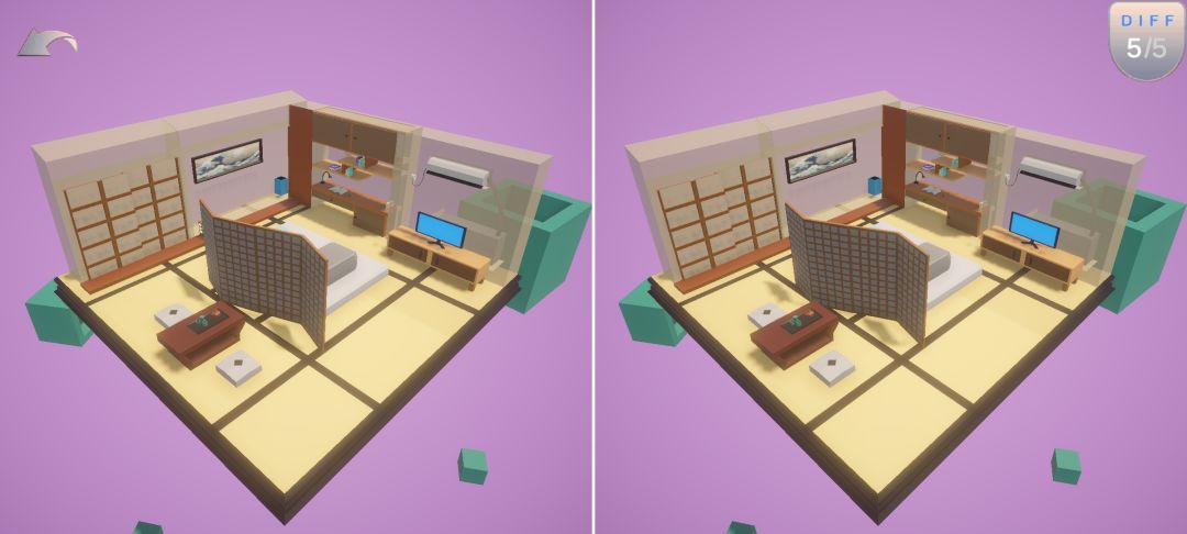 《芬奇房间》是一款lowpoly风格的3D找茬休闲游戏。游戏提供了多种风格的不同房间,玩家可以通过找出房间中的不同物体来进行通关。
