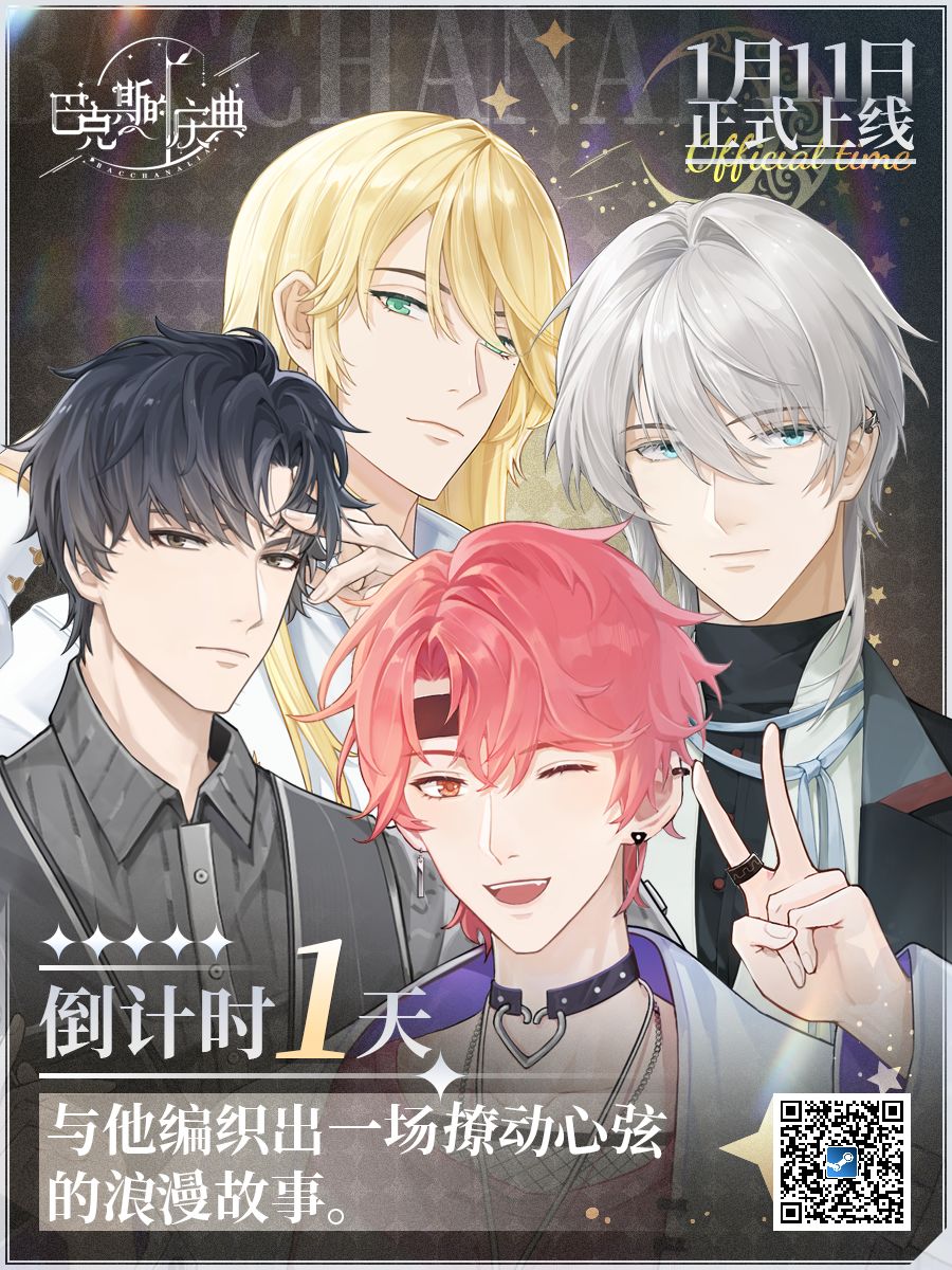 《巴克斯的庆典》是一款以现代演艺圈为背景的乙女向剧情互动类单机游戏。游戏将于1月11日17点正式登陆Steam平台解锁发售,首发两周8折售价仅22.4元,首发特惠结束后将恢复原价。快戳下方的steam链接,前往添加心愿单,发售当天将会有邮件提醒哦~