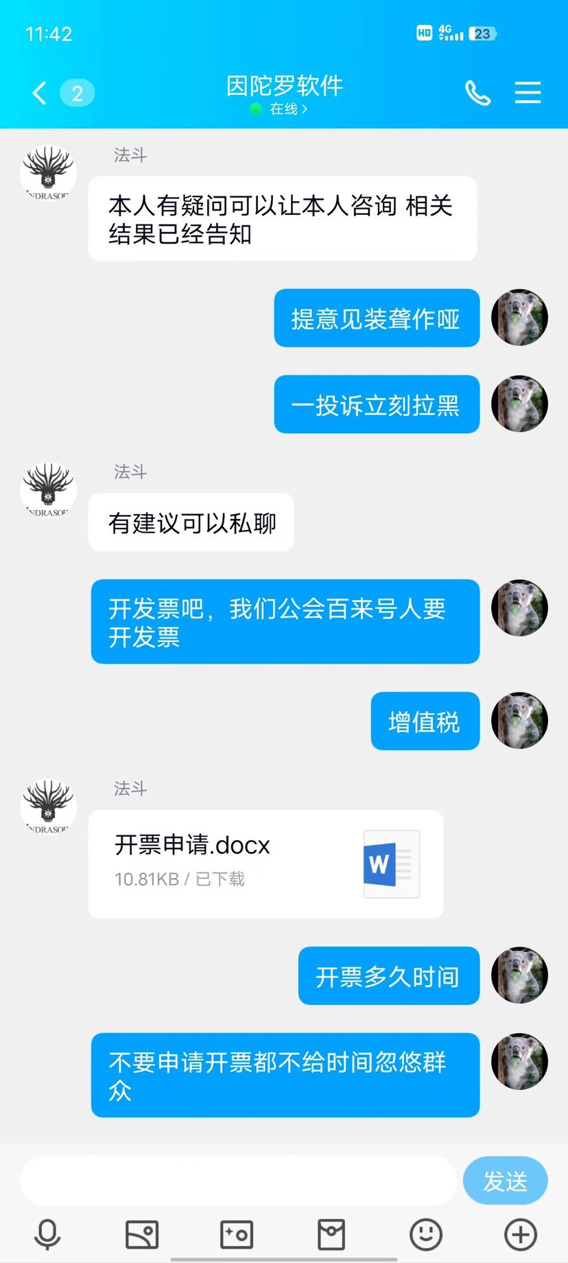 误封账号,讨要说法被禁言,投诉无果,要求开发票就给个这回复,说我们人少,冷处理,兄弟们站起来,让因陀罗知道我们不是沉默的羔羊