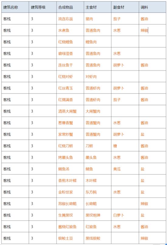1.其中有个很重要的玩法就是后厨,集市刷新后的售卖里有烹饪一项,这个售卖价格略低于客栈出售。可以在后厨批量做菜,然后卖出盈利,这里直接放官方食谱图吧。