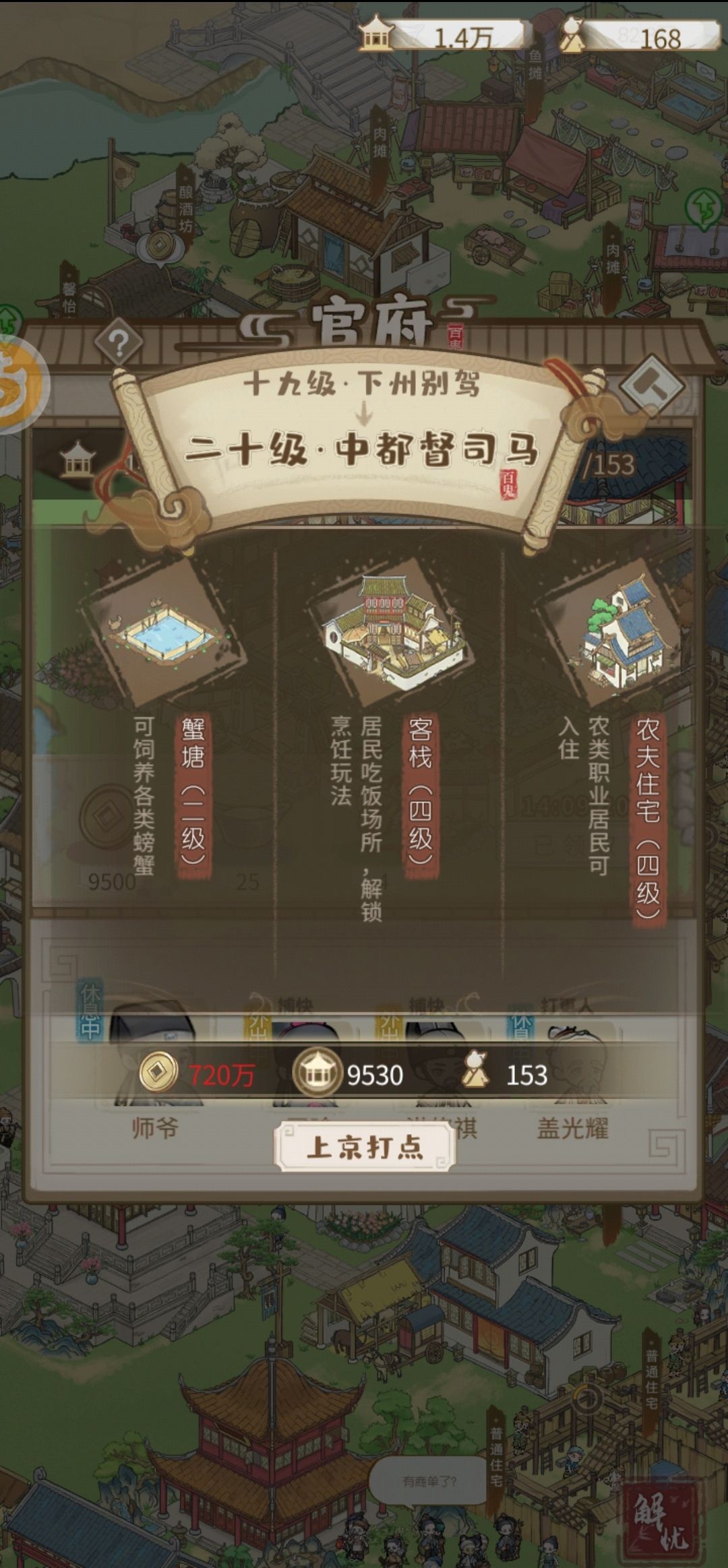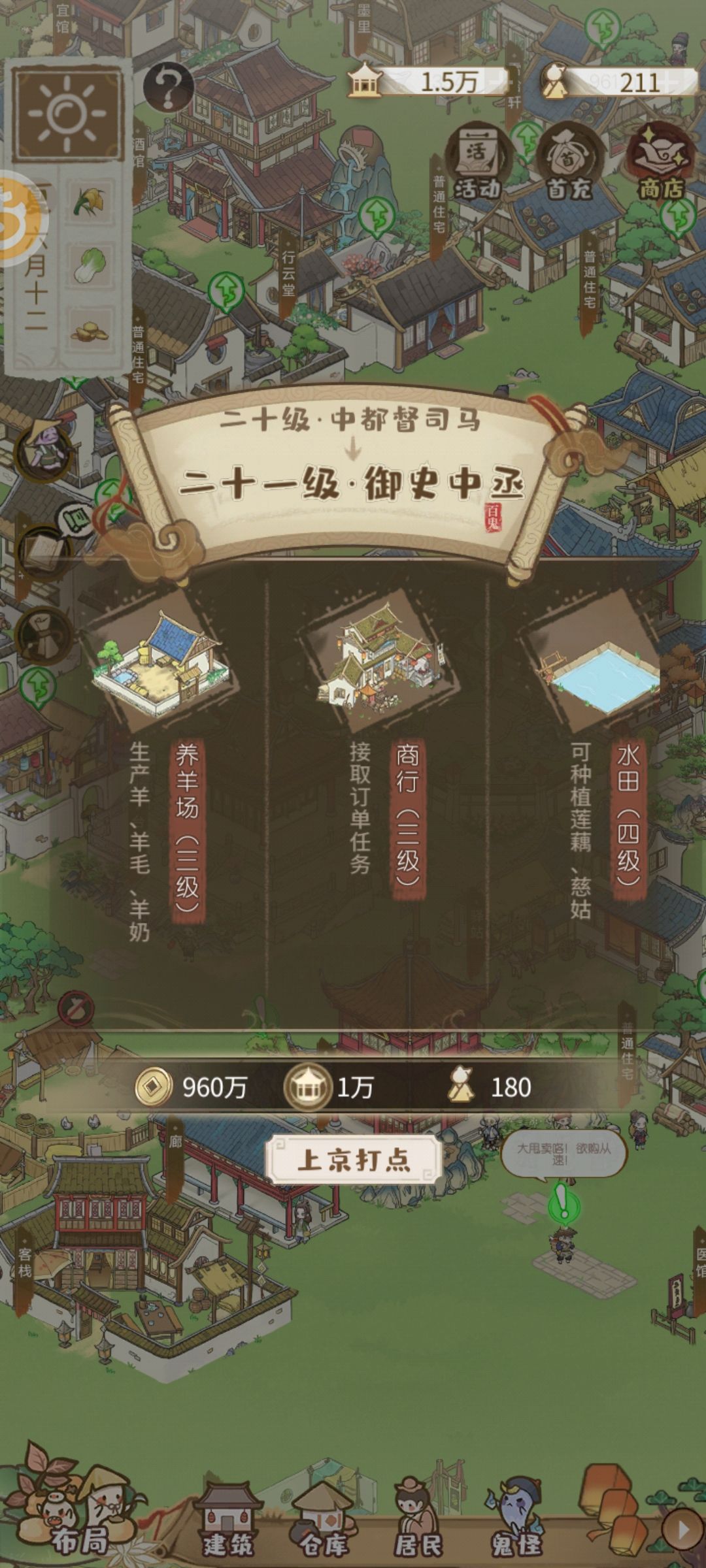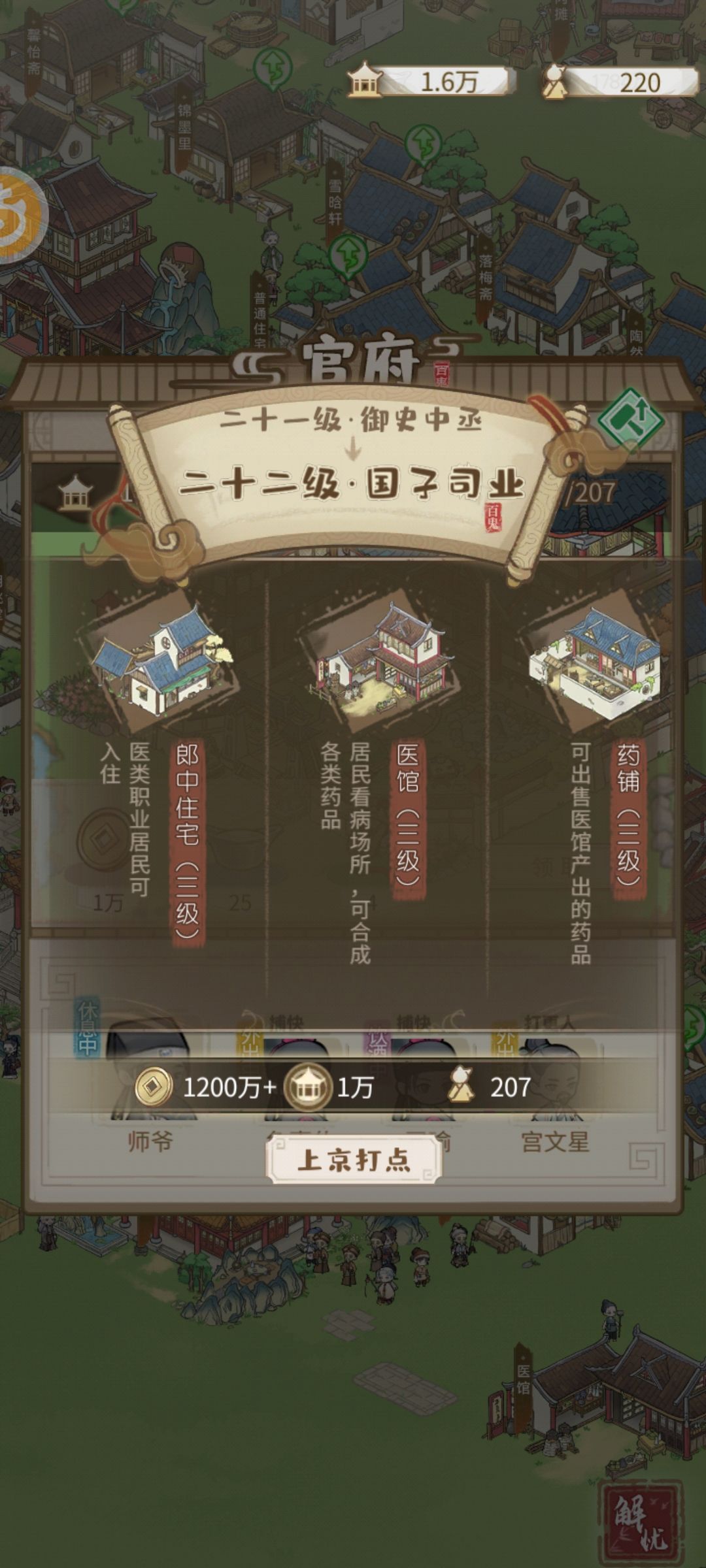2.商贾住宅有闲钱了就建,升级后安排上护院、婢女和管家,收租贼高,还可以给管家刷技能增加税收。