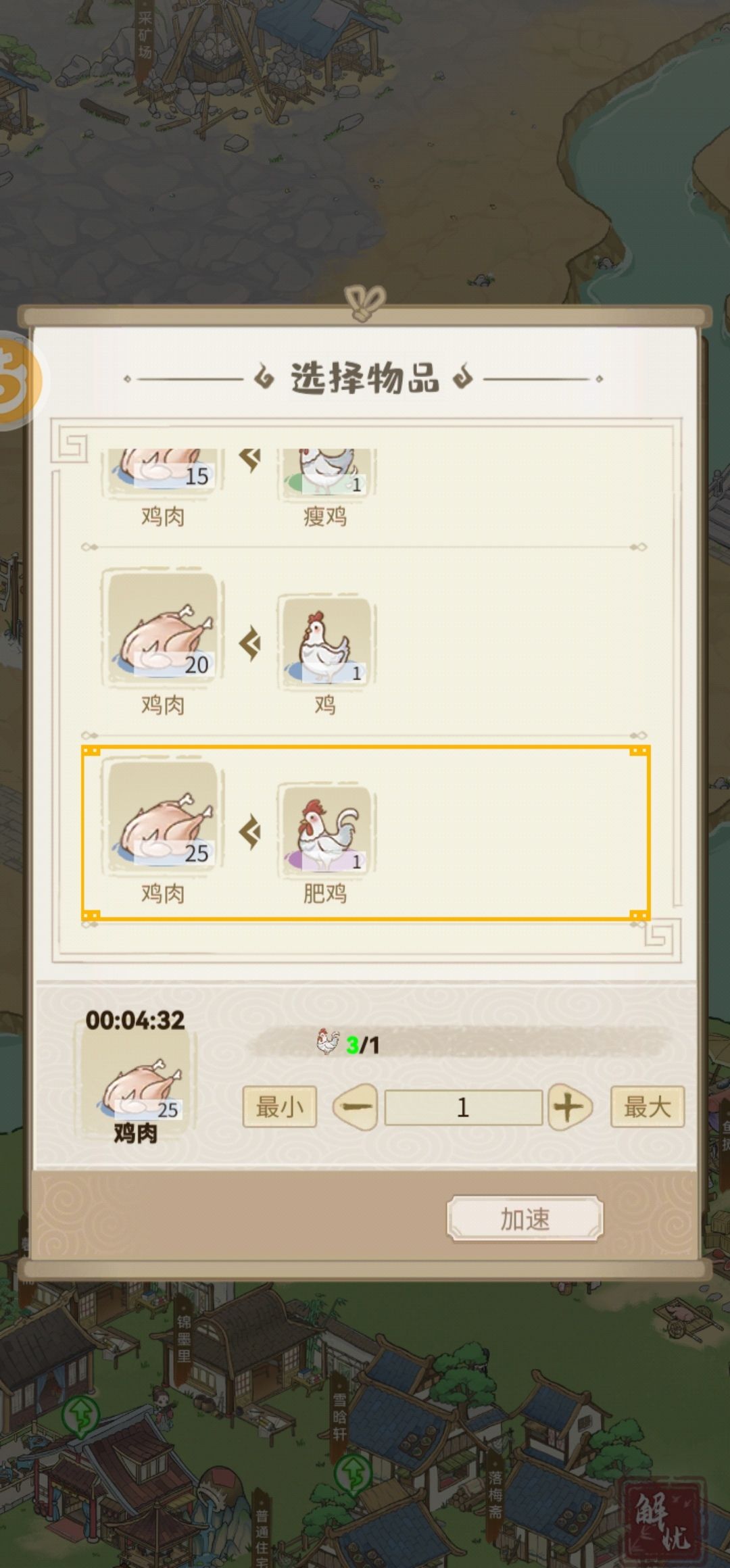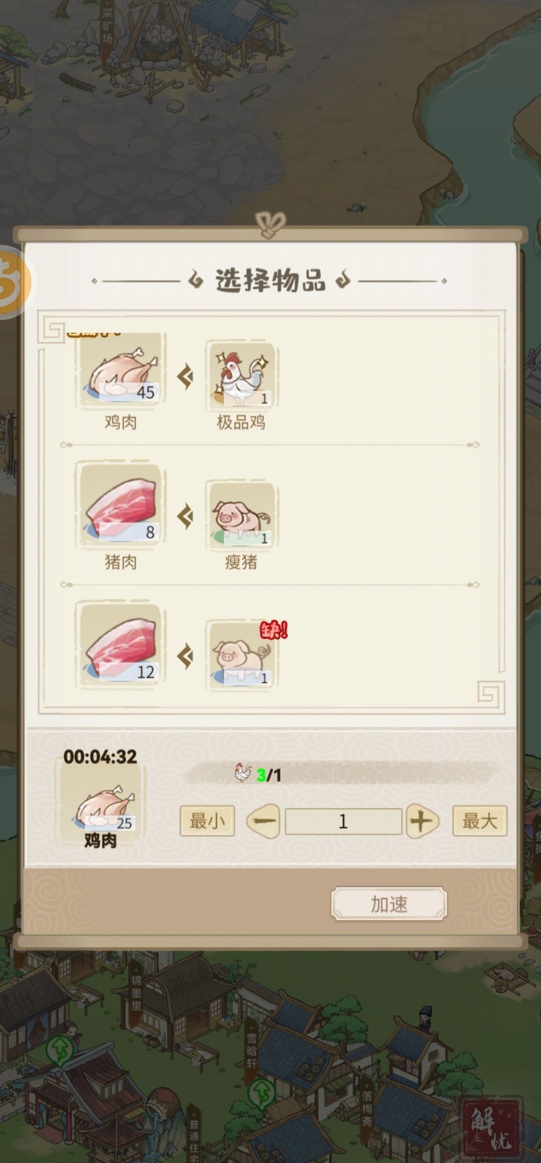 3.幼崽里有鸡、猪、羊等,对应养鸡场、养猪场、养羊场等,同理刷新,同理买囤。