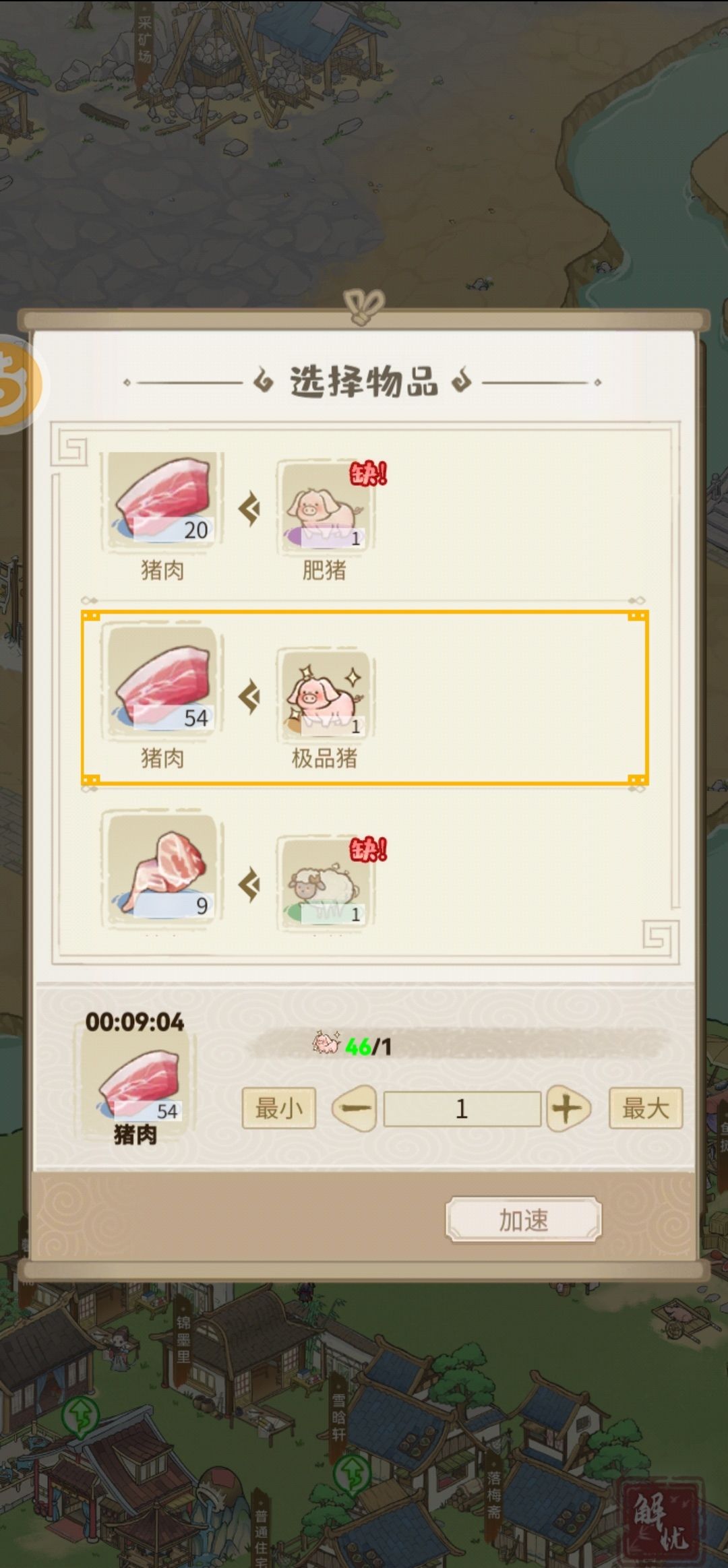 7.镐子是后面开了杳渺山,然后建采矿场,派遣矿工后用到的开采道具,高级镐子效率更高,但价格是普通的十倍。