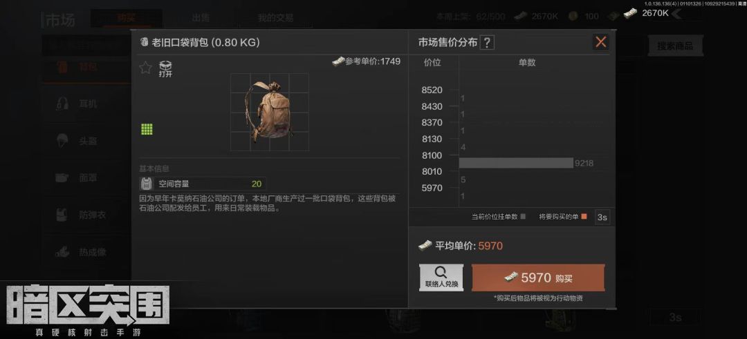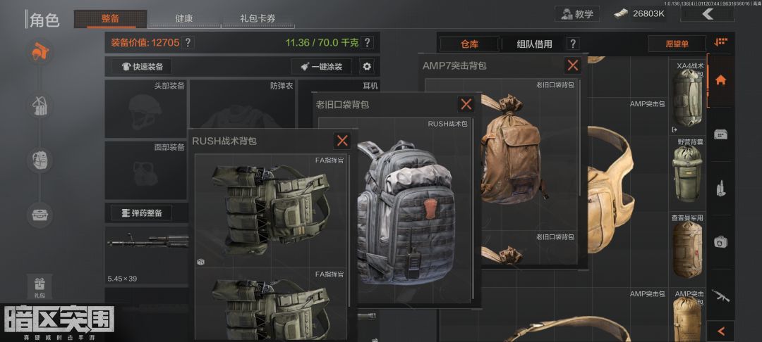 amp突击背包——老旧口袋背包x2——rush战术背包——al弹挂甲(6级)x2