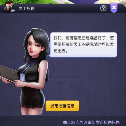 员工功能公司达到4级后开启,每天22点充值招募信息也是每天刷新招募的关键时间,要知道员工是公司的生产力当然游戏中是增益产出的存在