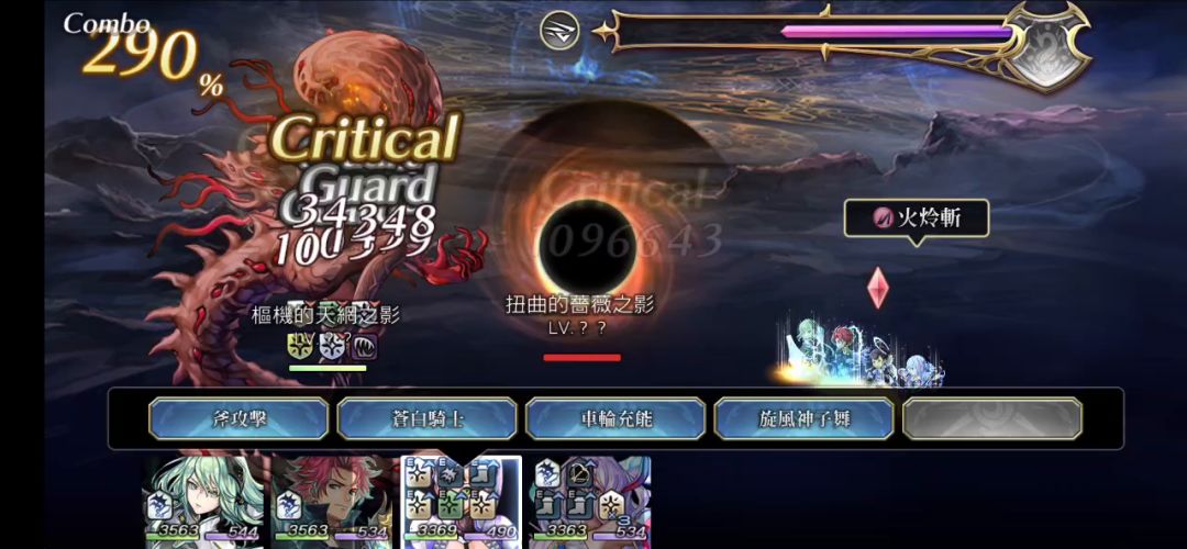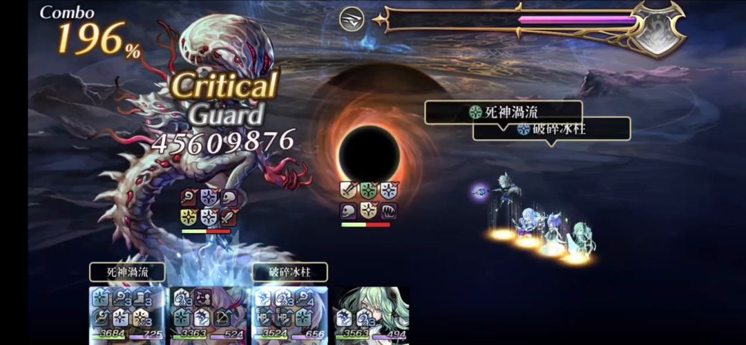 🔹在1TAF的时候,我们大多数队伍很难保证不击杀他召唤的小黑球,这就代表1T回合末的时候,我们会被大量扣血(上限的80%),而第二回合的时候,BOSS会先制阴斩,而且伤害不低,这时候我们需要一些对策来避免翻车: