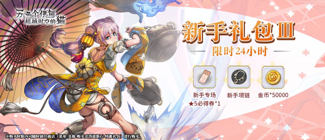 更新前,已通关主线第3章节的玩家,在更新后首次登录游戏24h内,玩家可进入特惠礼包商店(菜单-其他-购买克洛诺斯石-购买特惠礼包)进行购买。