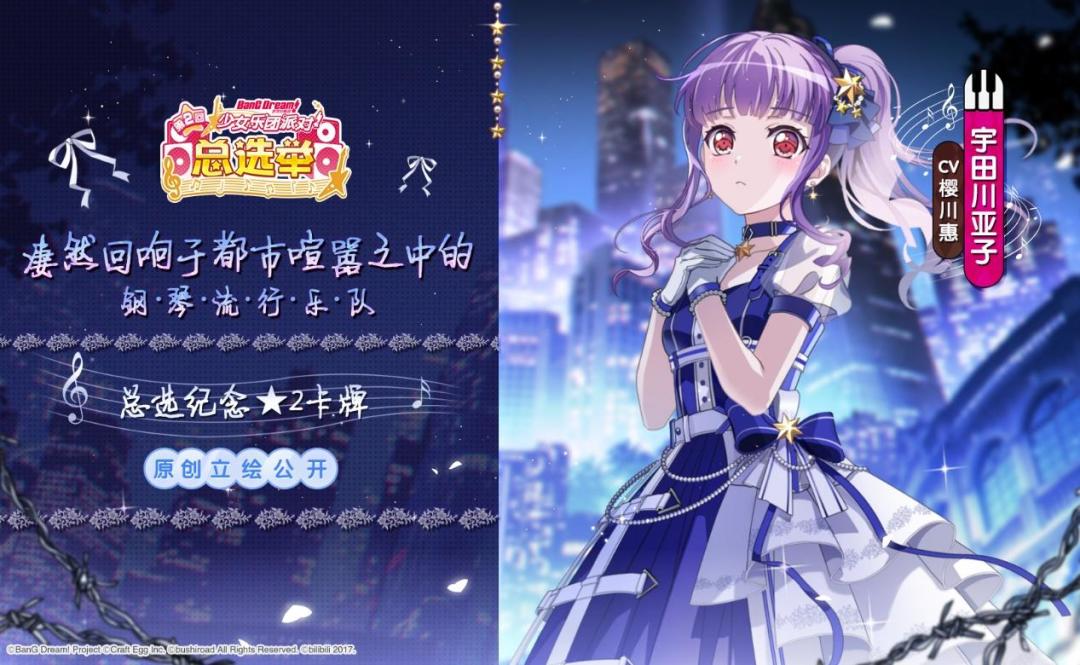 《BanG Dream! 少女乐团派对!》简中版第二回总选举获胜乐队——“凄然回响于都市喧嚣之中的钢琴流行乐队”成员——宇田川亚子原创立绘公开!