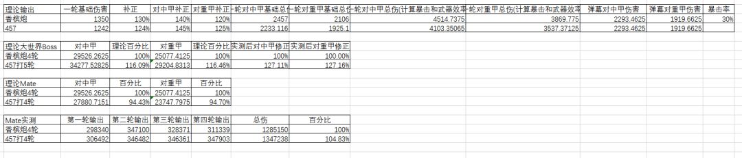 457优势:多20炮击,约增伤3%,大世界可以打5轮,mate4轮