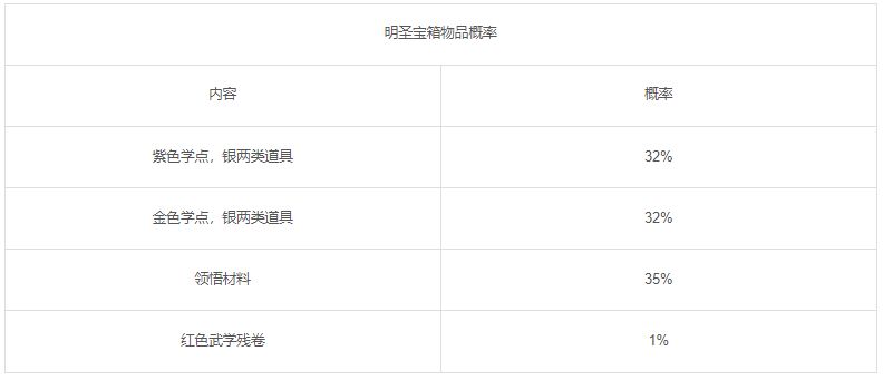 【明圣宝箱】:开启后有几率获得各种道具和秘籍【明圣天书】残页(开启需要消耗 “金钥匙”x1)