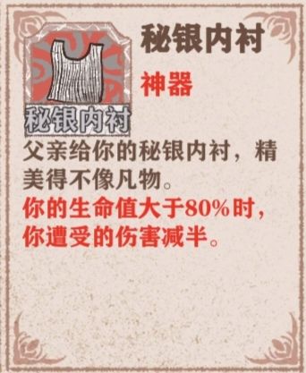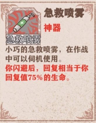 为了避免闪避失败被一套带走需要父亲甲的减伤,配合急救喷雾的回复可以使血量一直保持在80%以上,保证减伤。