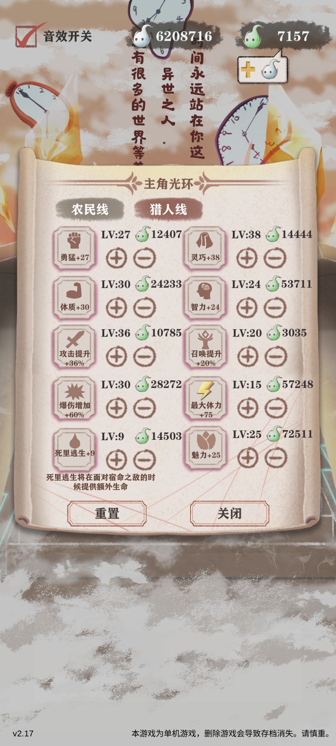 全点灵巧,每回摸神树保证血量避免暴毙,神树摸多了果子加1闪避。先买鸟再买睡袋和鞋,12岁左右图1先花20体力sl出还行的闪避装备,下一回合sl闪避喷雾。