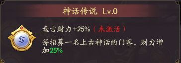 盘古是有两个特殊技能的这个两个技能是上古神话门客都有的,第一个神话传说,会增加百分之25的财力,每招募一个上古神话的门客就会增加百分之25的赚钱,上古神话的门客现在也是有6个的,所以最高可以提升到百分之125的财力哦