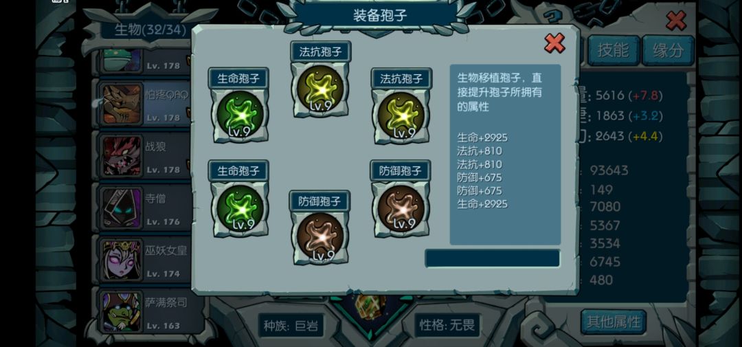 孢子加的都是基础属性,肉:生命加双抗。物理刺:攻击,暴击,(生命,蓝量,灵气)。法刺,法师:特攻,暴击,(生命,蓝量,看着什么顺眼),工具人(缺速度就上速度,缺蓝就上蓝,缺什么补什么),孢子自由补充因为前期根本不够用。