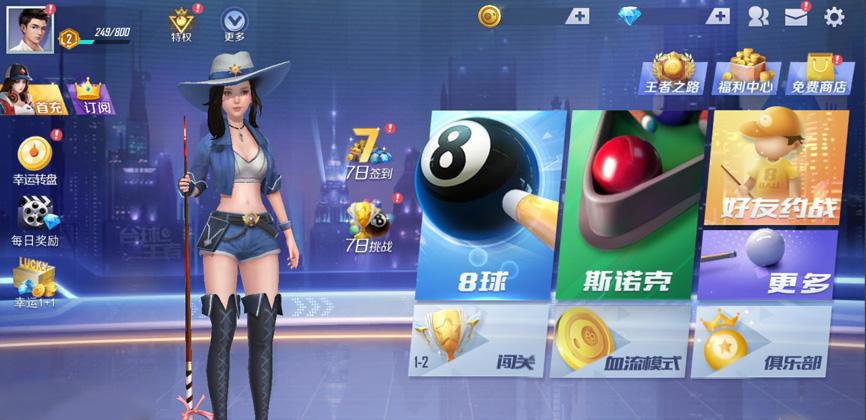 百变特效彰显个性,主题球杆、角色皮肤、酷炫球桌、母球外观自由搭配,更有如梦似幻的彩球拖尾及进袋特效!