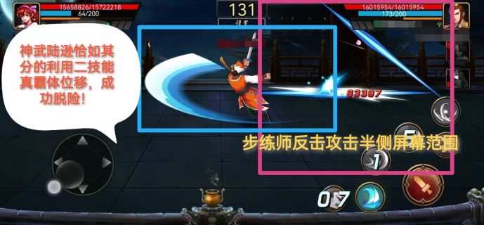 既然步练师遇强则强,多重防反机制让步练师固若金汤无懈可击,格挡与反击自成一派,只要格挡住就是反手一套,确实是将防守与进攻融会贯通。步练师只有在对手攻击时,恰到好处的招架住了才会触发出防守反击。而且反击的攻击范围是半侧屏幕,如果触发反击的刹那,对手通过位移技能脱离步练师反击的攻击区域,也能有一定概率脱险,反击剑气交错感觉还是有一定的间隙,步练师反击破真霸体还是有隙可乘!这仅仅是个例不能代表实际!