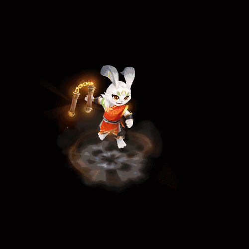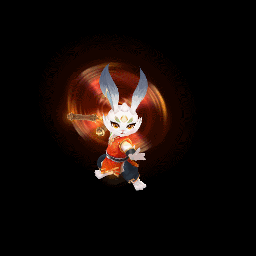 【动作展示】普通攻击:功夫兔向前挥出手中的伏妖棍,灵气瞬间化为炽灼的神火,连周遭的空间也一并焚起。其气势之磅礴,足以燎原!