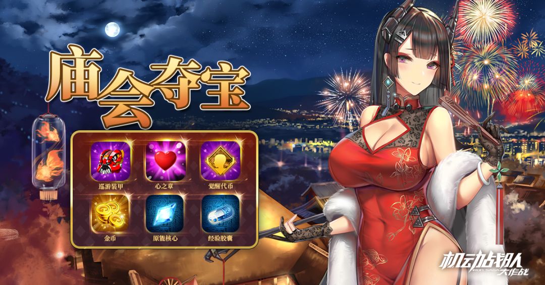 「庙会夺宝」资源活动关卡共6关,完成所有活动关卡可获得活动代币【巡游装甲】、觉醒代币、心之章、配件魔方等奖励。