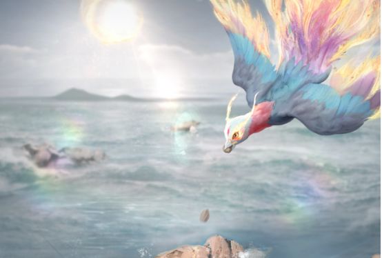 女娃死的十分不甘,死后化成了发鸠山的一种神鸟,长得像乌鸦,却有着花脑袋、白嘴巴和红爪子,因为总是哀鸣:“精卫!精卫!”便以此为名。精卫重生全凭一介执念未消:风华正茂却葬身大海。于是不断衔起西山上的石子、树枝填进东海,想要把东海填平。