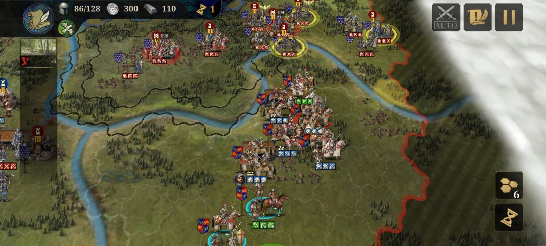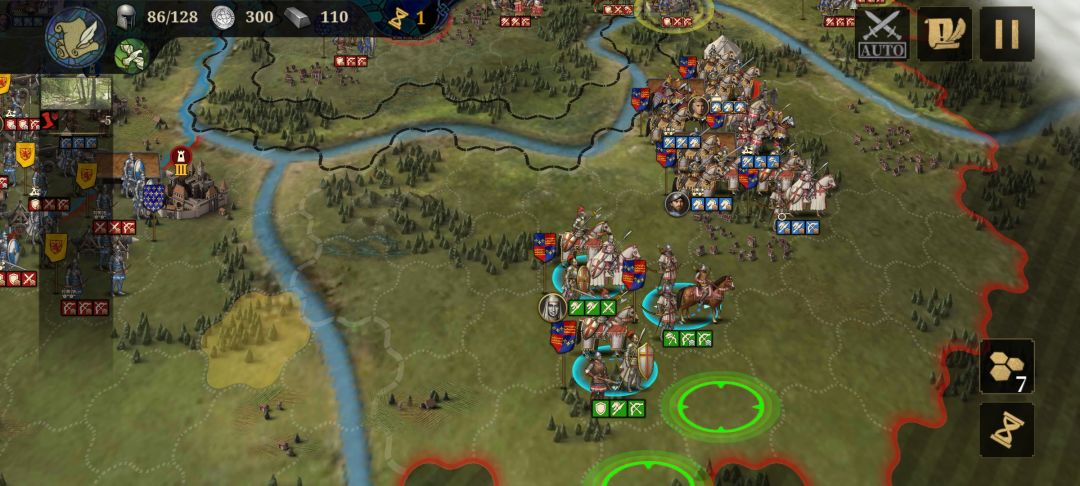 之后保证红圈将一直在这个位置上,这个位置不会直接一步到那个三面被围的地方,然后通过走位把其他四个将活着走到城上面那个凹陷处放出四把火烧掉城和兵,后面红圈将就无敌了