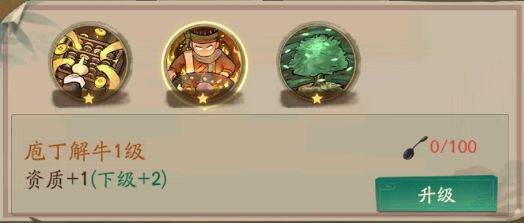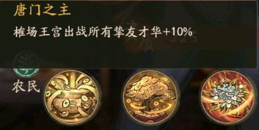 天赋技能,有3个,十面来财,招财·农道,唐门之主。技能都有详细解释,大家可以看看。升级的方式就需要精进到1星才可以升级,这里面天赋升星差不多都是用门客帖来升星的要消耗3张。