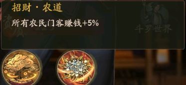 农业 之道,这个技能是农民职业才有的专属技能,可以农业类商铺赚速,需要100本农业之道书籍才可以升级,但是增加的赚速加成不是很高。