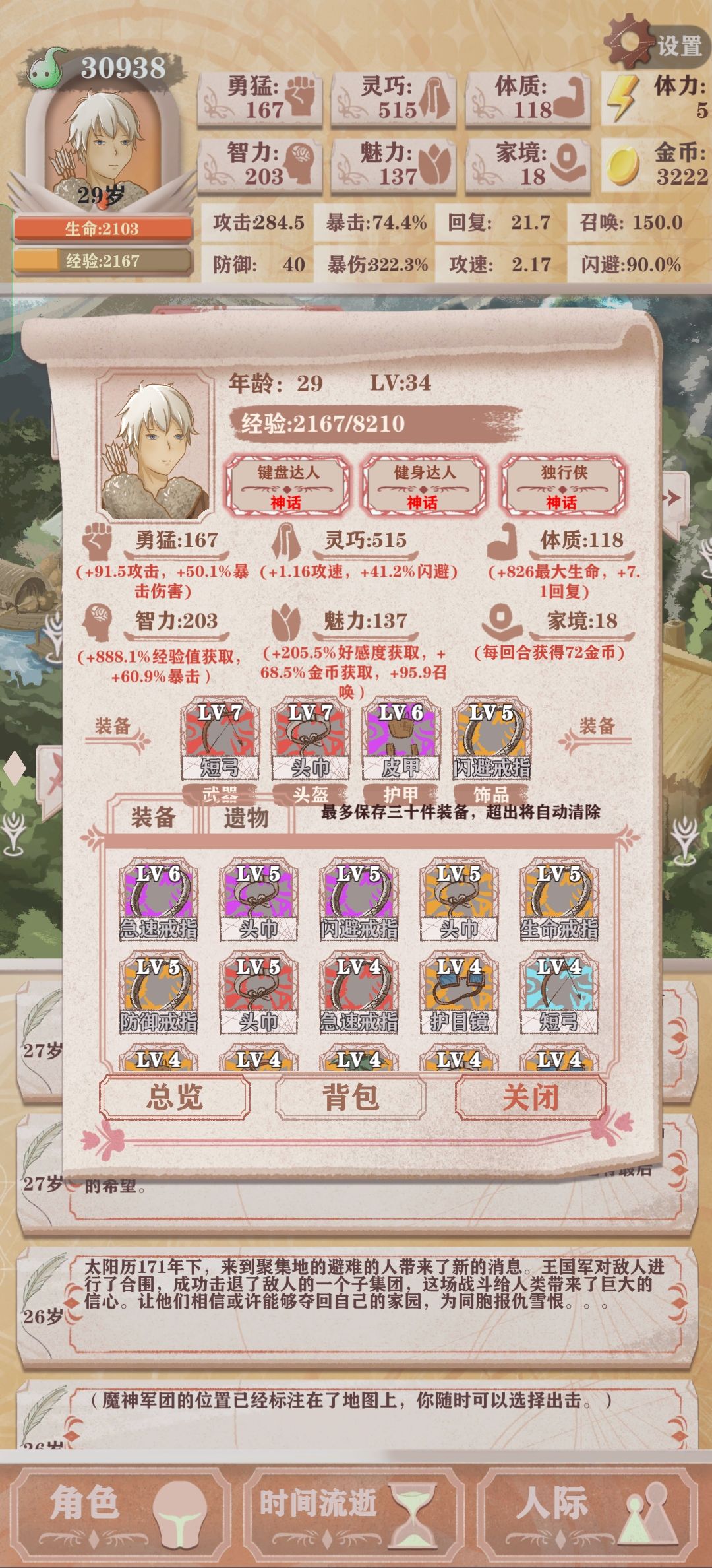 独行键盘健身,没带未来视前期舒服但是后期特别抽象。而且这次非常黑,一直没有果子吃,闪避差太多。 还是未来视轻松些,一个天赋就值125灵巧。