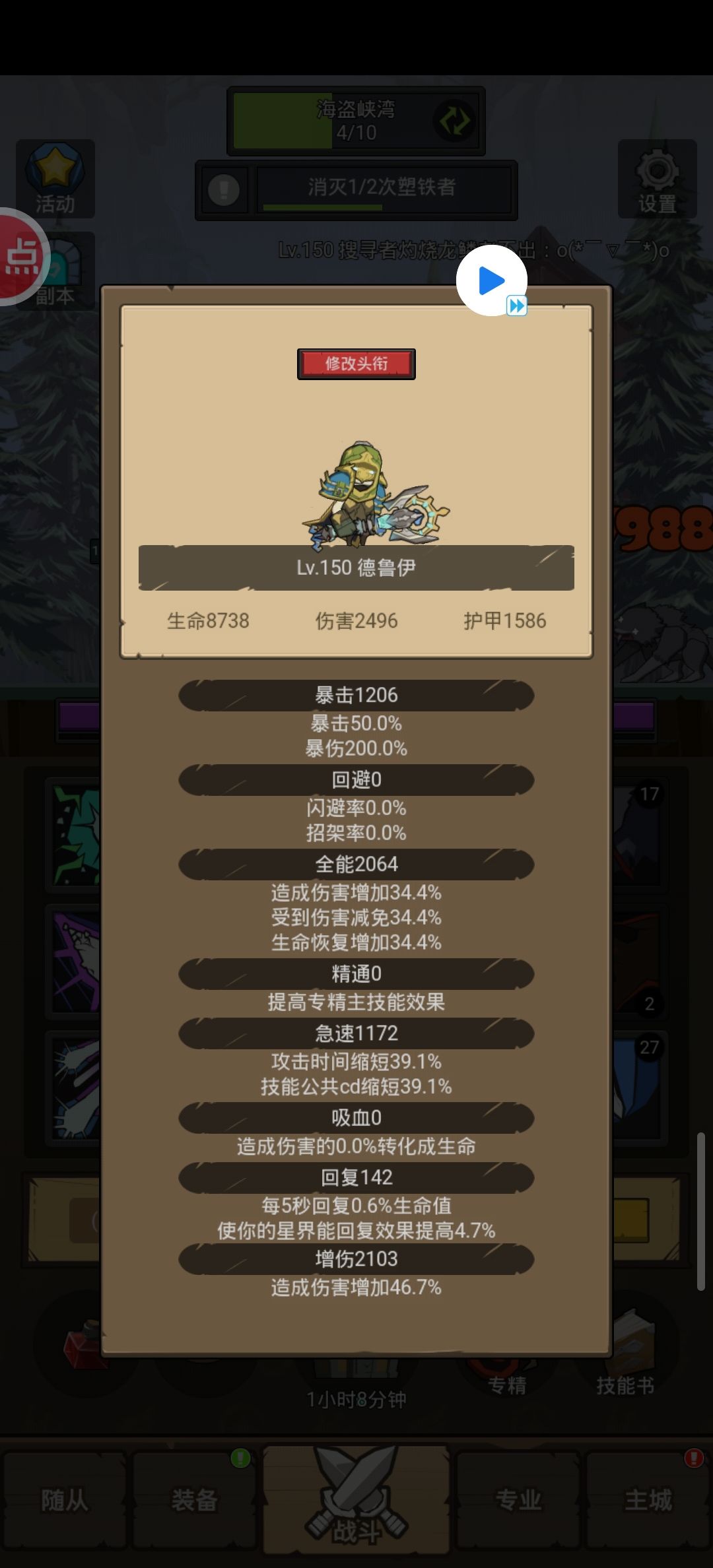 tips:鸟德受击可以加上百分之二十,持续三秒,这属性如果不怕暴毙或者boss触发技能就让他打一下再台风吹走,再禁锢,可以打的更快。