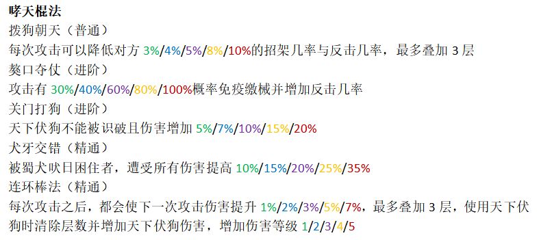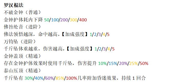 来到武学领悟(二次调整削弱的有雪饮八音天女狗棍如来等)