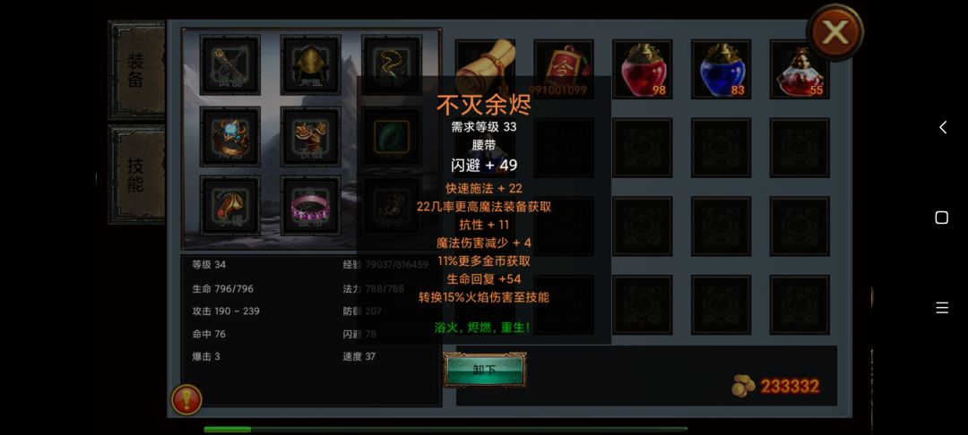 这玩意就厉害了,火法33级质变装,同时提供了快速施法、暗金爆率、火焰转化率、抗性,四个实用属性,很棒的一件装备,和冰法的33级寒铁锁链堪称双子星。
